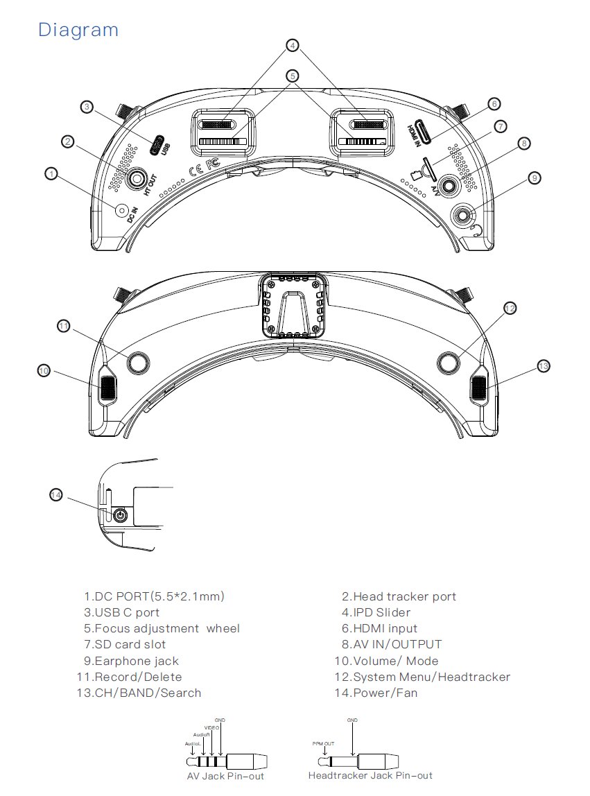 | Package Included | - SKY04X Pro Goggles × 1 - Steadyview V3.3 Receiver Module × 1 - Faceplate (wide and narrow) × 2 - Sponge with Velcro × 1 - Zipper case × 1 - Power cable × 1 - Headtracker cable × 1 - 5.8GHz 2dB antennas × 2 - Video/Audio Cable × 1 - USB-C Cable × 1 - SKY04x Pro User Manual × 1 |