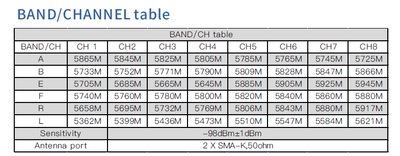 | Receiver | 5.8GHz 48CH V3.3 Steadyview Receiver |