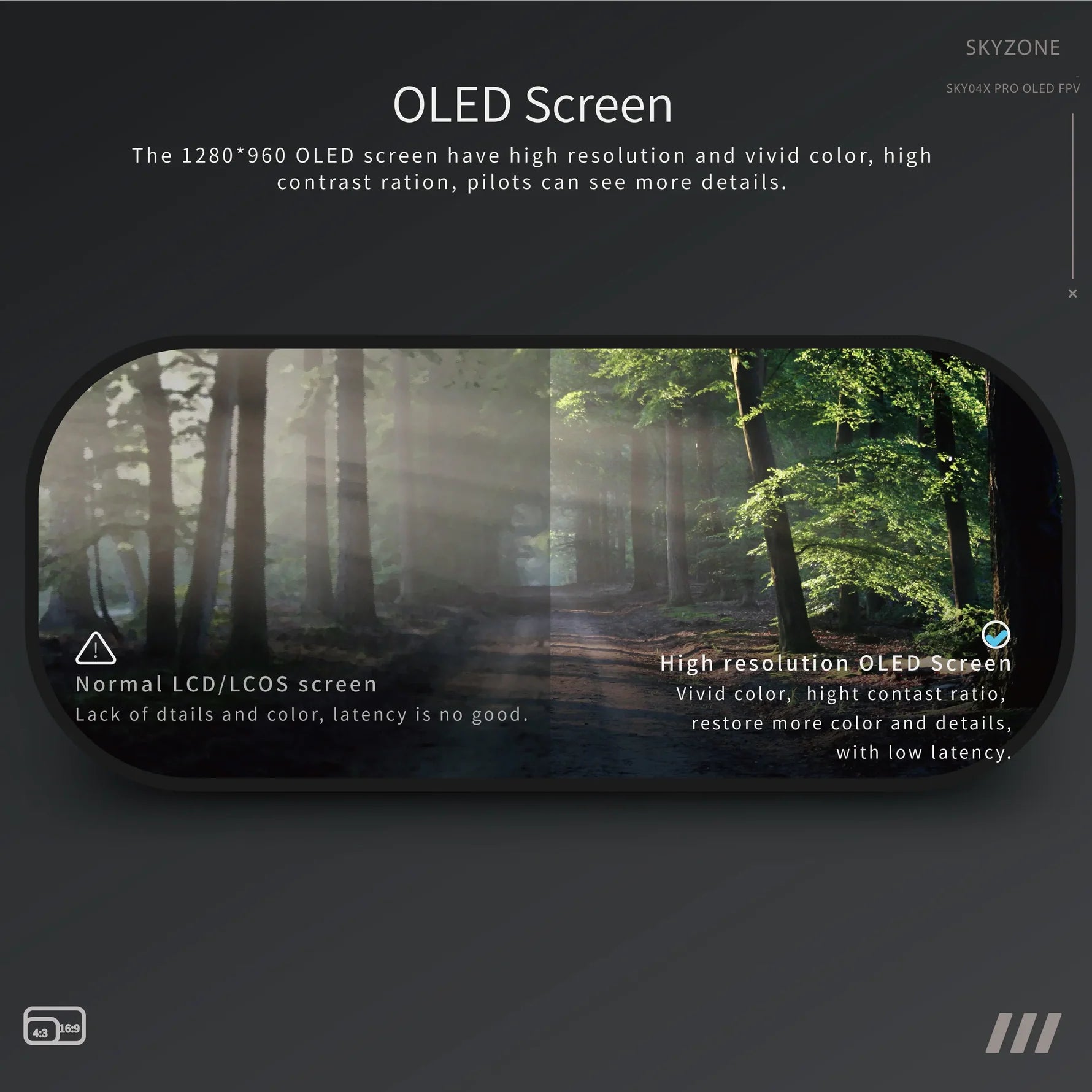 The SKY04X PRO FPV Goggle is the upgrade version of SKY04X, with new optics and a new OLED panel, the skyzone 04x pro can give pilot 52 degrees of field of view, giving huge immersive fpv experience, also with a new OLED panel, the 1920*1080 resolution, and a 100FPS frame rate, use can have way better experience when using the digital VRX system. The Skyzone 04x Pro's new matte painting also avoids fingerprints and reduces glare.